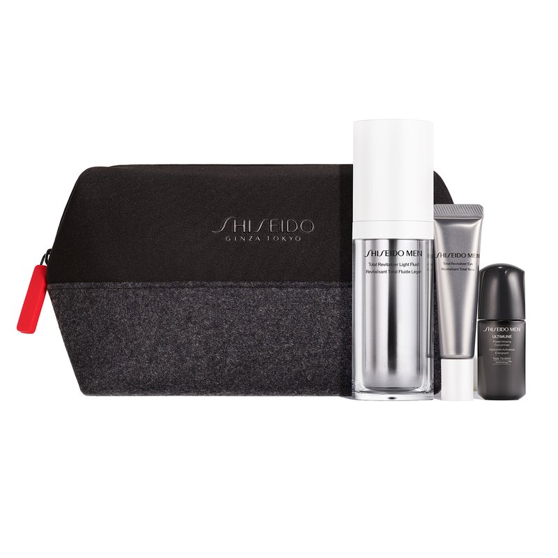 This anti-aging gift set for men includes two full-size daily skincare essentials plus a deluxe-size sample, packed in a reusable pouch. Total Revitalizer Light Fluid is a daily moisturizer that helps visibly improve five skin aging concerns for men including wrinkles, sagging, dullness, roughness and loss of firmness. Total Revitalizer Eye Cream deeply hydrates for 48 hours and visibly improves dark circles in four weeks.* This routine is complete with a deluxe-size sample of Ultimune Men Power Infusing Serum that delivers targeted antioxidants and helps resist damage for healthy-looking skin.