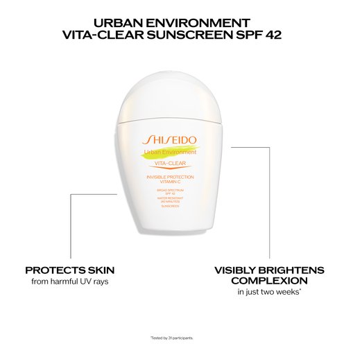 Urban Environment Vita-Clear Sunscreen SPF 42 is more than a sunscreen. It's Vitamin C meets SPF 42 for lightweight yet powerful protection that feels as comfortable as your skincare.