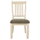 The beauty of the Bolanburg upholstered dining chair is something to savor. Designed to serve up comfort and flair, this rake-back dining chair entices with a cushioned seat covered in a heavy woven fabric that complements the chair�s antiqued white finish.