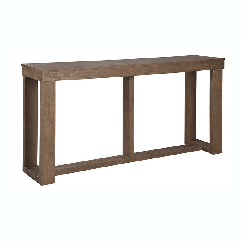 The Cariton sofa table masters the art of simplicity. Bold, blocky profile is enriched with plank-effect styling and a textured grayish brown finish for a look that’s cool and contemporary and a vibe that’s warm and inviting.