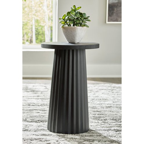 Show off your trend-right sensibilities with this contemporary accent table. Designed for the modern tastemaker, the solid wood piece wows with a fluted base. This organic beauty can be used on its own or grouped with other pieces in the collection. How's that for form and function?