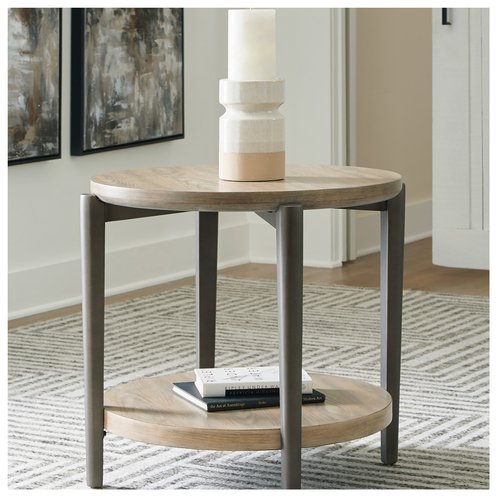 Merging industrial and contemporary elements, this end table turns display space into an art form. The whitish brown wood-tone finish is right on trend, while contrasting painted metallic legs offer a modern touch of stripped-back beauty. With its streamlined design, this table proves that less is more.