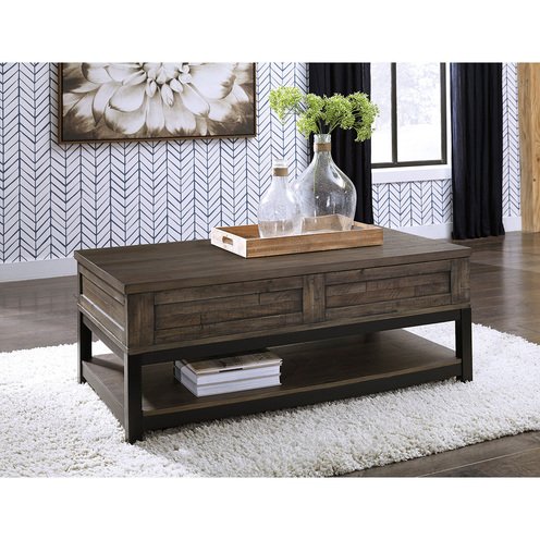 Combining a two-tone finish with a gently distressed texture produces one very distinctive lift top coffee table. Whether your style is modern farmhouse or urban industrial, the Johurst coffee table with a spring-lift top is the perfect accent for your rustic retreat.Dimensions