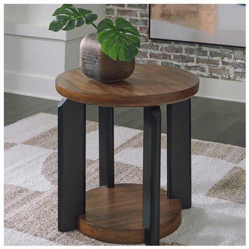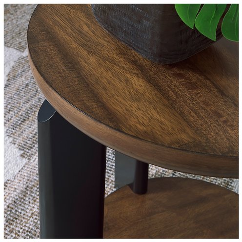 Experience the captivating allure of this end table, an effortless blend of casual and refined aesthetics. Its two-tone finish combines satin black with a rich brown wood tone for a modern, relaxed vibe that you'll love. Perfectly suited for your contemporary home, it offers open storage to accommodate your favorite books and accessories. Your search for simple, chic design ends here.