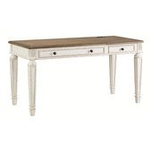 Elevating the art of traditional cottage styling, the Realyn desk is your heavenly home office realized. Antiqued two-tone aesthetic blends a chipped white with a distressed wood tone top for added charm. Framed drawer fronts, decorative corbels and elegantly turned and tapered legs add refinement, while dark bronze-tone knobs lend a classic touch. Spring lift top raises the surface to a comfortable standing position, for a healthy alternative. Built for looks and productivity, the built-in power supply and dual USB ports keep your devices close at hand and ready to go.