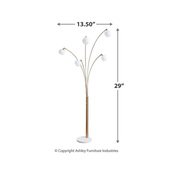 Why settle for ordinary? Feel free to bend the rules with the Taliya metal arc floor lamp. Equally sculptural and functional, this striking floor lamp wows with its champagne-tone metal and sturdy white marble construction. Five staggered-height lights with glass globe shades illuminate every which way.