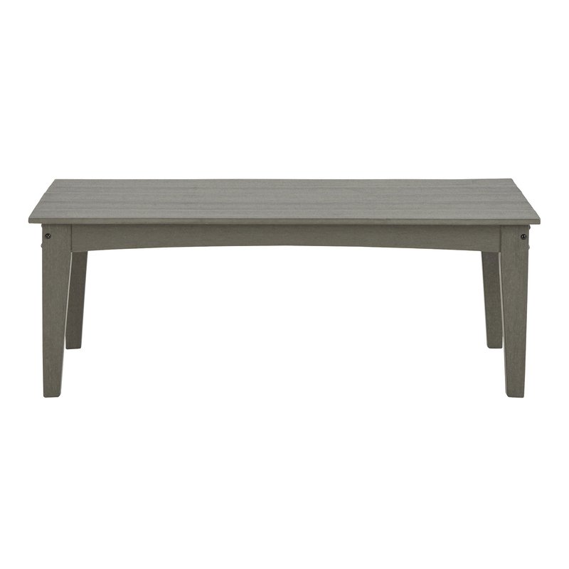 It's the dawn of a new day for gray. Embrace the style trend with the Visola outdoor coffee table. Crafted of HDPE material that combines the exceptional durability and weather resistance you need with the "wood look" you love, this rectangular outdoor coffee table takes al fresco living to a whole new level. Slatted top infuses a plank-style, farmhouse-inspired touch that naturally sheds rainwater.