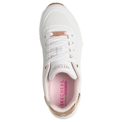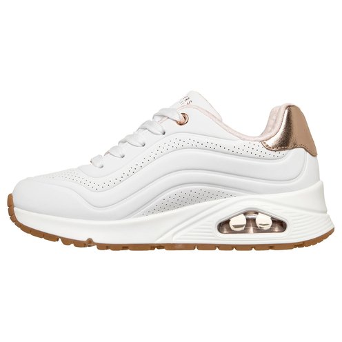 Glam up in style and comfort with Skechers Street™ UNO Gen1 - Shimmer Wave. This lace-up fashion sneaker features a durabuck upper with a metallic heel mustache, a Skechers Air-Cooled Memory Foam® comfort insole, and a visible Skech-Air® airbag midsole.