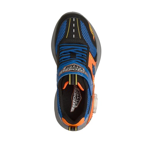 Start your engines with miles of fun wearing Skechers Garage! This lightweight Skechers adaptive closure sneaker features a mesh and synthetic overlay upper with eye-catching car themed graphics, fixed stretch laces, and an adjustable instep strap. This playful design is complete with a sliding garage on the midsole and includes two toy cars that can be stored inside!