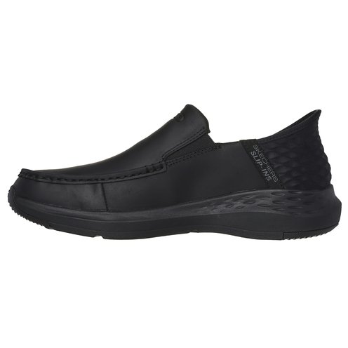 Step into easy-wearing comfort and classic style with Skechers Hands Free Slip-ins™ Relaxed Fit®: Parson - Oswin. Designed with an exclusive Heel Pillow™, this laceless fit moc toe style features a Skechers Slip-ins™ molded heel panel, leather upper, Skechers Air-Cooled Memory Foam® insole, and Goga Mat Arch™ cushioning for added support.