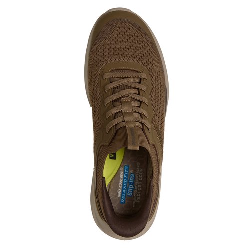 Classic modern comfort pairs with effortless style in Skechers Hands Free Slip-ins® Relaxed Fit®: Sloan - Orbital. Designed with our Heel Pillow®, this slip-on sneaker features an engineered knit upper with fixed stretch laces. The comfort technology includes a charcoal infused Skechers Air-Cooled Memory Foam® insole, Skechers Memory Arch™ for added support, and our geometric Glide-Step® midsole combined with a visible Skech-Air® airbag.