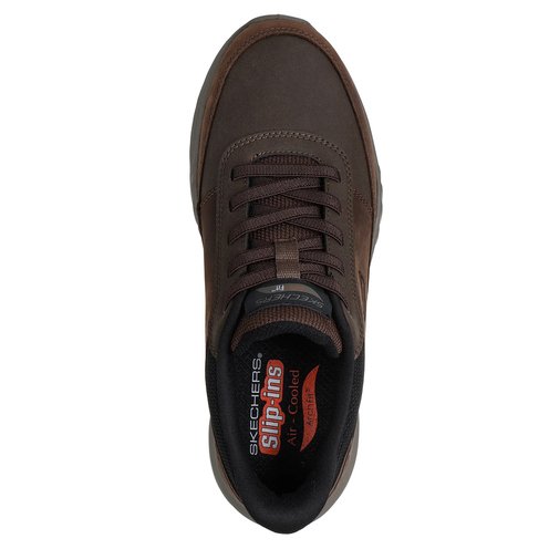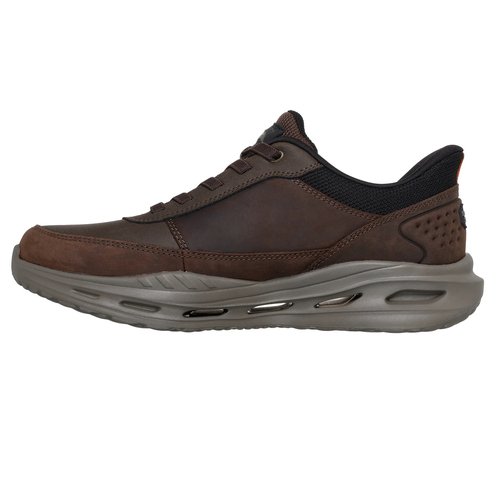 Easy-wearing convenience pairs with roomy support in Skechers Hands Free Slip-ins® Relaxed Fit®: Arch Fit® Orvan - Moxley. Designed with our exclusive Heel Pillow™, this EFFICIENCY™ design features a leather and synthetic upper with stretch laces, a Glide-Step® midsole, and removable Arch Fit® insole.