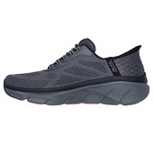 Enjoy longer walks with supportive comfort wearing Skechers Hands Free Slip-ins® Relaxed Fit®: D'Lux Walker 2.0 - Rezinate. Designed with our exclusive Heel Pillow™, this vegan walking design features an engineered knit and synthetic upper with stretch laces, well-cushioned midsole, and a Skechers Air-Cooled Memory Foam® comfort insole.