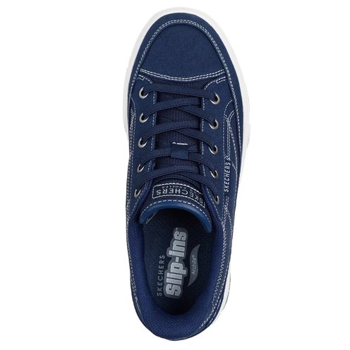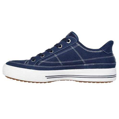 Stroll through the day in amazing cushioned comfort wearing Skechers Hands Free Slip-ins® x Skechers Street™ Arch Fit® Arcade - See Ya There. This casual sneaker has been granted the APMA Seal of Acceptance and features a canvas upper with a removable Arch Fit® insole, stretch laces, and a lightweight cushioned midsole.