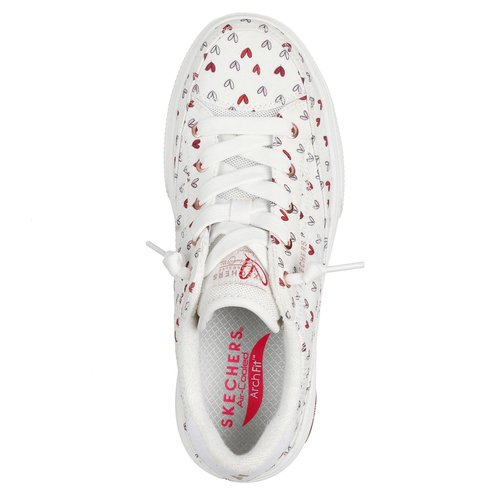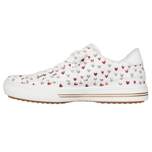 Internationally renowned muralist James Goldcrown brings his iconic #Lovewall heart designs to Skechers in this inspiring collaboration. Style yourself in love and walkable comfort with Skechers x JGoldcrown: Arch Fit Arcade - Love On Top. This fashion sneaker has been granted the APMA Seal of Acceptance and features an allover print of the artist's signature heart design on a canvas upper with decorative tied-off laces and a removable Arch Fit® insole.