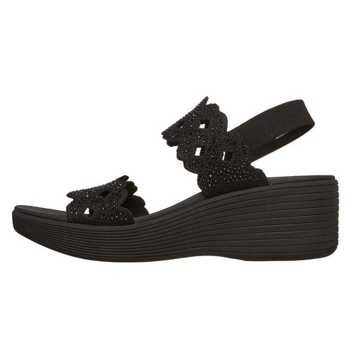 Fashionable flair and comfort combine in Skechers Parallel Lite - Sassy Dayz 2.0. This vegan comfort sandal features a knit upper with rhinestone and cut-out details, a gore backstrap, a platform wedge midsole, and a cushioned Luxe Foam® footbed.