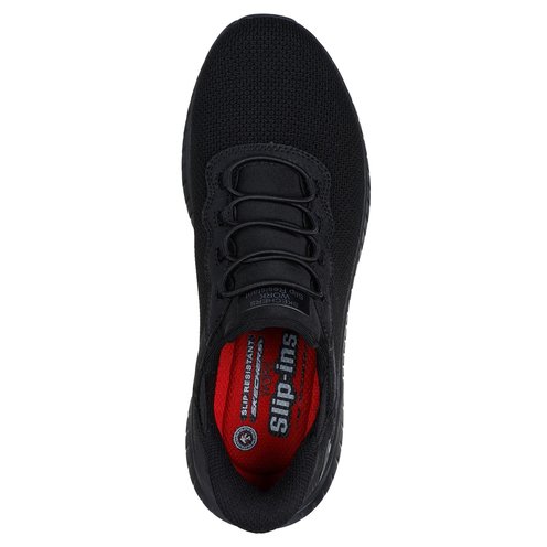 Stay safe and comfortable all day with the easy-wearing Skechers Hands Free Slip-ins® Work™: Squad Chaos SR - Jasul. Designed with our Heel Pillow®, this slip-resistant athletic style features a mesh and synthetic upper with stretch laces and a cushioned Skechers Air-Cooled Memory Foam® comfort insole.