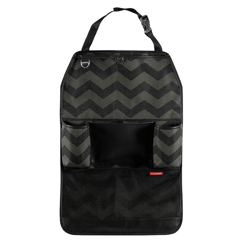 Perfectly sized to securely fit behind most front seats, this car organizer is as smart as it looks. The chic chevron print and fashionable faux leather coordinate with any car interior.