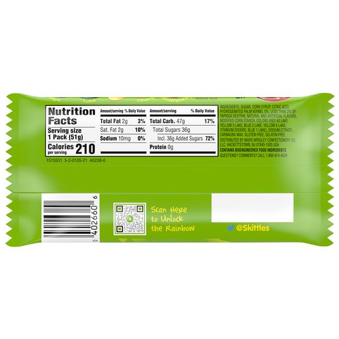 Made to celebrate the other side of sweet, Sour SKITTLES candy offers a tangy twist on our Original mix and includes sour strawberry, sour lime, sour lemon, sour orange and sour grape flavors.