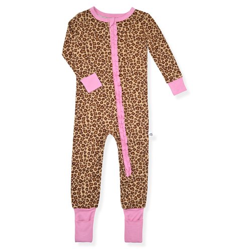 This adorable 2-pack bamboo sleep coverall set for girls is crafted from ultra-soft, breathable bamboo fabric for sweet dreams and all-night comfort. One coverall features a delicate seashell and seahorse print, while the other showcases a soft star pattern with feminine ruffle trim. Includes pink grip socks