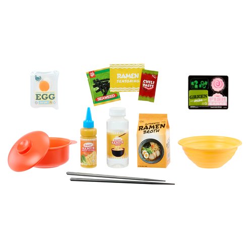 - Included Ingredients: 2 Fish Cakes, 2 Egg Halves, 1 Green Onion, Broth, Noodles, Seasoning Packet, 5 Seaweed Strips, Furikake, and Hot Sauce.1 Pot with Airtight Lid, 1 Bowl for Ramen, 1 Pair of Chopsticks,1 Knife