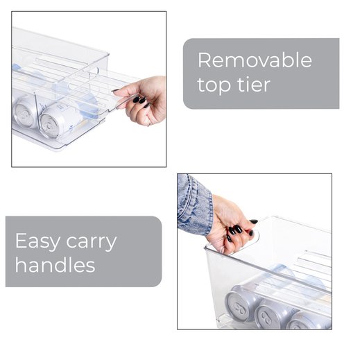 Keep your beverages neatly stored and easy to grab with this 2-Tier Can Dispenser. Designed to hold up to 10 soda cans, this space-saving organizer helps maximize storage in your refrigerator, freezer, or pantry while keeping cans visible and accessible. Its versatile design makes everyday organization simple, and the easy-to-clean surface adds convenience to your kitchen routine.