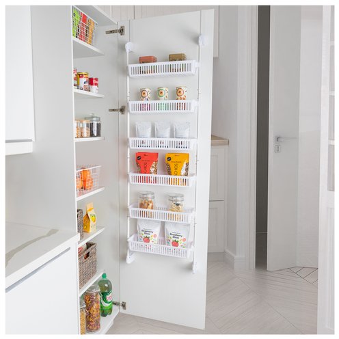 This versatile organizer isn't just for the kitchen - try it in your bathroom, bedroom, home office, garage, or laundry room to organize and store everything from office supplies and cleaning supplies to arts and crafts and laundry supplies. With its patented over the door hooks, you can hang it on any door to take advantage of unused space.