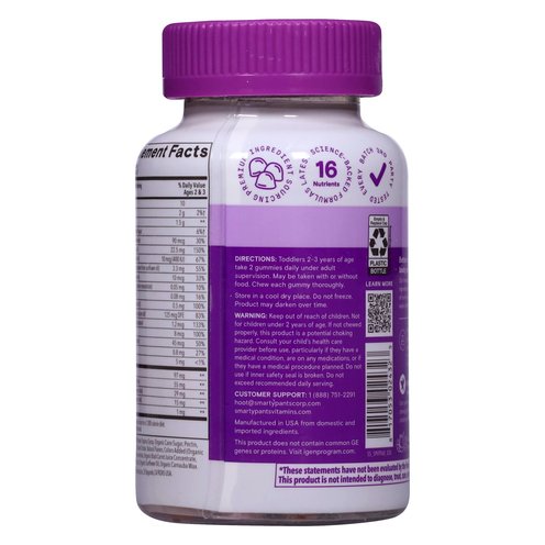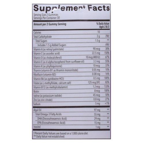 Multivitamin that supports toddler growth and development with 16 daily nutrients including vitamins C, D3, B12, A, E, K1, and folate, as well as Omega-3 DHA & EPA.