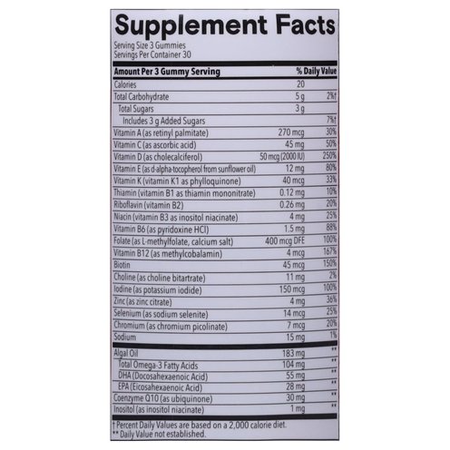 Multivitamin that support the nutrient needs of women with 21 daily nutrients including vitamins C, D3, B12, A, biotin, and folate, as well as Omega-3s.