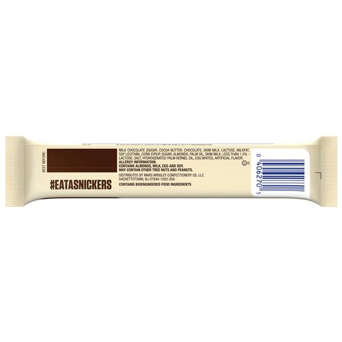 Almonds. Caramel. Nougat. 210 calories per serving. 2 serving per pack. Per Serving: 210 calories; 3.5 g sat fat (18% DV); 105 mg sodium (5% DV); 26 total sugars. Contains bioengineered food ingredients.