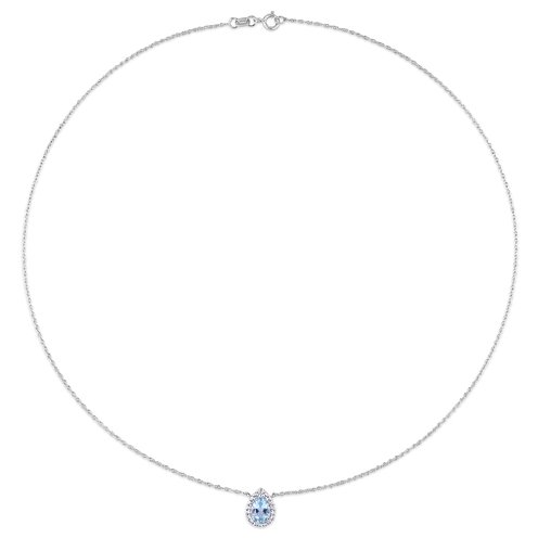 This stunning halo teardrop necklace is crafted in 10-karat white gold and features a pear-cut, prong-set sky blue topaz gemstone surrounded by 18 round-cut, prong-set white topaz gemstones in a halo pattern. Enhanced with a high polished finish and suspended on a 17-inch rope chain, this gemstone necklace makes a perfect gift either for yourself or for someone you love. A beautiful addition to any jewelry collection.
