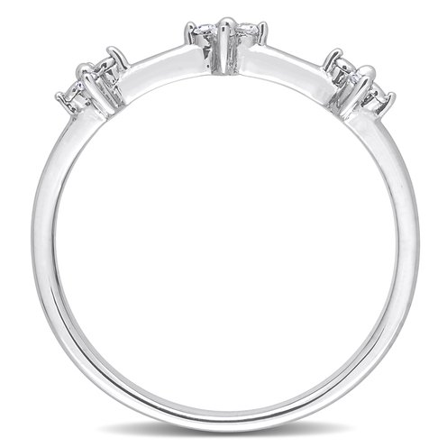 This pretty triple floral ring is crafted in lustrous sterling silver and features eight round-cut, prong-set diamonds showcased with a trio of diamond quartets stationed along the band. This design is perfect for layering and stacking. Buffed with luster, this luminous ring is the perfect addition to any jewelry collection.