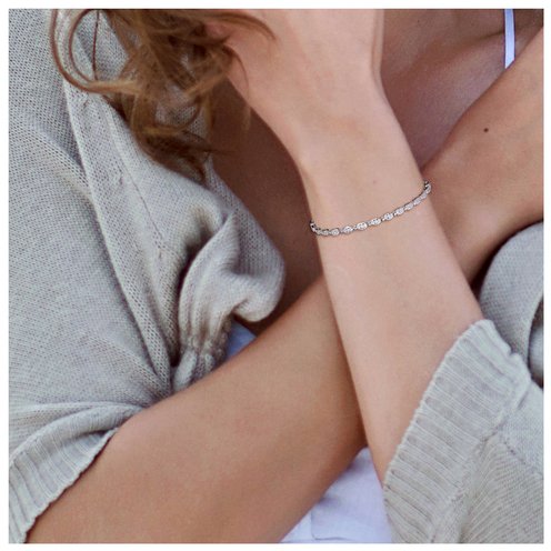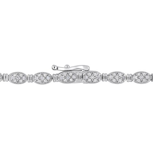 Look extraordinary with this Diamond Tennis Bracelet. Crafted in lustrous sterling silver, this bracelet features 78 round-cut, pave-set diamonds (H-I,I3) embellished in a tennis pattern for a glitzy look. Enhanced with a high polished finish, this alluring tennis bracelet is a valuable addition to any jewelry collection. This dazzling gemstone bracelet measures 7.5-inch in length and secures with a pressure tongue clasp. Wear it for an evening out and makes heads turn.
