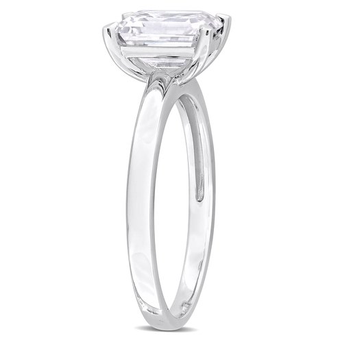 This ring showcases a stunning 1 3/4-carat octagon-cut created moissanite, radiating remarkable brilliance and fire. The moissanite gemstone is the focal point of a classic solitaire design, meticulously set in a lustrous and enduring sterling silver band. Offering an affordable and elegant alternative to traditional diamond solitaire rings, this piece is a timeless choice for engagements or special occasions.