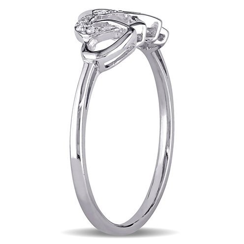 This Diamond Accent Interlocking-Heart Ring is crafted in lustrous white gold. Featuring four open hearts linked together, the fashion ring twinkles with five round, pave-set diamonds.