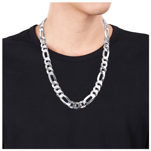 Bold and beautiful, this figaro flat necklace is the valuable addition to any jewelry collection. Crafted in lustrous sterling silver, it features a shimmering figaro flat chain. Polished a brilliant shine, this link necklace secures with a lobster clasp. Pair this gorgeous chain necklace with any alphabet initial pendant or wear alone. This lightweight necklace is suitable for all day wear. An elegant piece suitable for both men and women.
