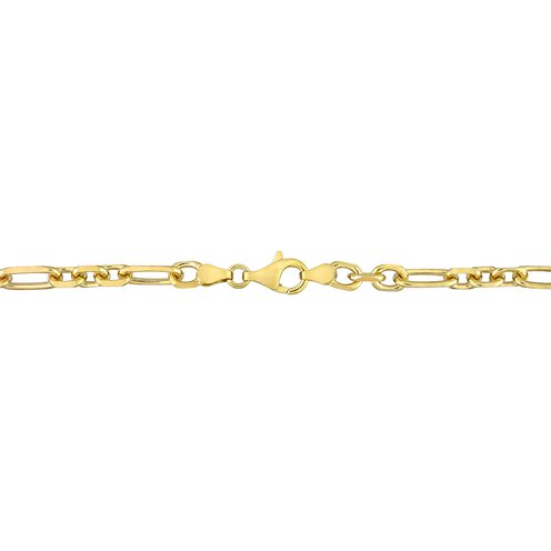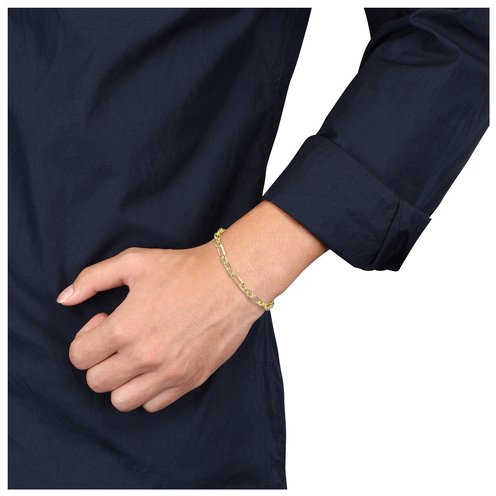 Let everyone look at you in awe when you wear this ravishing Diamond Cut Figaro Men's Bracelet. In sparkling yellow plated sterling silver, this fancy 7.5-inch bracelet is comfortably secured with a lobster clasp. Polished to a brilliant shine, this elegant bracelet will accentuate your already charming personality. Be it a traditional function or a party, this versatile bracelet will be your first choice.