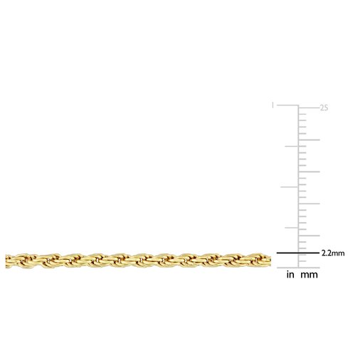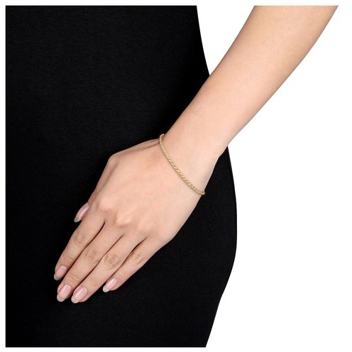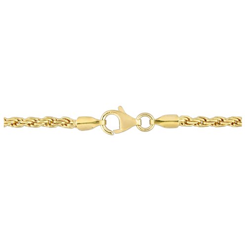 Enhance your jewelry collection with this classic 2.2mm rope chain bracelet, crafted from sterling silver and finished with a radiant yellow-plated shine. The intricate rope design adds texture and dimension, creating a timeless look that pairs effortlessly with any outfit. It offers a comfortable and secure fit, fastened with a sturdy lobster clasp. Whether worn alone or layered with other pieces, this bracelet brings a touch of elegance and versatility to your everyday style.