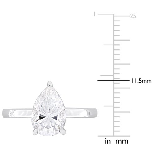 The 2-carat Pear-Cut Created Moissanite Solitaire Ring in Sterling Silver is a captivating and timeless piece of jewelry. Featuring a brilliant pear-cut created moissanite gemstone set in lustrous sterling silver, this ring exudes elegance and sophistication. Its classic design and fiery sparkle make it a perfect choice for engagements or any special occasion.