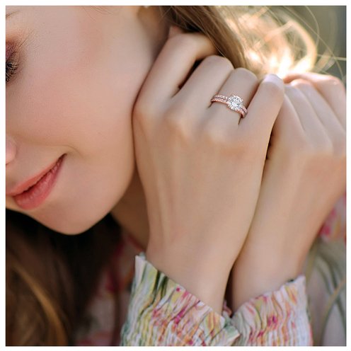 Make a lasting commitment with this sumptuous Engagement Ring. Mounted in luminous rose gold, this splendid ring showcases one (8x8mm) and 34 (1.5x1.5mm) prong-set created white sapphire gemstones. Enhanced with a high polished finish, this ravishing ring is the perfect choice to commence the journey of togetherness. Be the social media queen with this lovely ring and get featured on the best blogs.