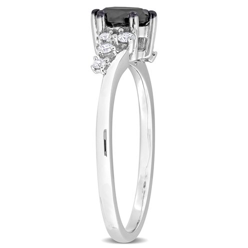 Indulge in the timeless allure of monochrome elegance with this 3/4ct TDW Black and White Oval and Round-Cut Diamond Ring in 14k White Gold. This exquisite piece features a harmonious blend of oval and round-cut diamonds, meticulously arranged to create a captivating visual. The contrast between the deep, mysterious black diamonds and the scintillating white diamonds adds a touch of drama and sophistication to your style. Crafted in lustrous 14k white gold, this ring is a testament to luxury and refinement. Whether worn as a statement piece or as a symbol of a special occasion, it's a jewelry masterpiece that will leave a lasting impression. Elevate your look with the enchanting beauty of black and white diamonds.
