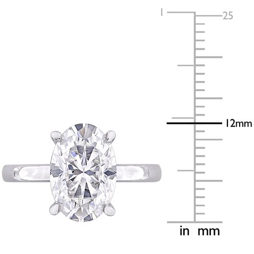 The 4 1/2 carat Oval-cut Created Moissanite Solitaire Engagement Ring in Sterling Silver is a radiant and brilliant choice for a symbol of everlasting love. This exquisite ring showcases a sparkling oval-cut created moissanite, carefully set in a lustrous sterling silver band. Its timeless design and stunning gem make it a captivating choice for those who appreciate both elegance and eco-friendly jewelry.