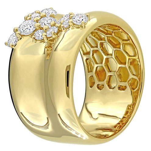 This dazzling wide band ring showcases a brilliant cluster of diamonds totaling 4/5 carat, set in luxurious 14K yellow gold. Its bold yet elegant design makes it a standout piece, perfect for adding radiant sparkle to any look.