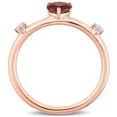 This pretty 3-stone stackable heart ring is crafted in 10-karat rose gold and features a heart-cut, prong-set garnet gemstone studded at the center with two round-cut, prong-set white topaz gemstone augmented on its band in station style. Enhanced with a high polished finish, this stackable ring is the perfect addition to any jewelry collection. Pair this trendsetting ring with any business or casual outfit and look elegant.