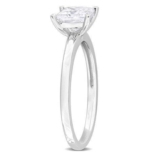 This elegant ring features a square-cut created weighing 7/8 carat as it delivers remarkable brilliance and fire. The moissanite gemstone is set in a classic and enduring solitaire design, crafted from lustrous and durable sterling silver. This stunning piece is a cost-effective alternative to traditional diamond solitaire rings, making it a timeless choice for engagements or special occasions.