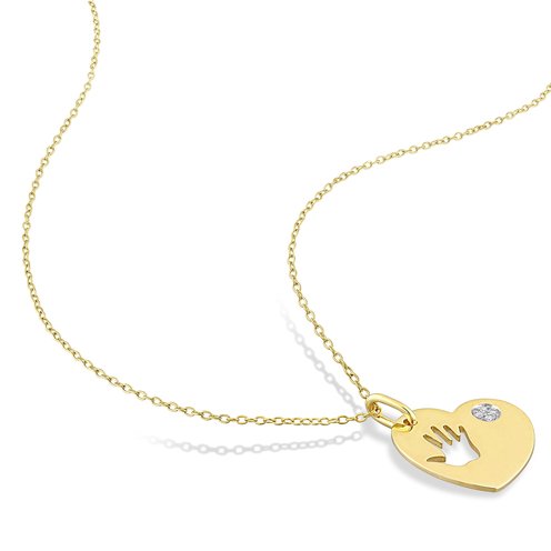This stylish heart charm with chain is mounted in luminous yellow plated sterling silver. This captivating charm features four pave-set, diamonds placed in a circular motif on the side of the heart. This elegant charm also showcases an open palm inside the heart. Suspended on an 18-inch round cable chain, this exquisite charm is polished to brilliance. Whether you are stepping out to get coffee or meeting your friends, this classy charm shall be the perfect accessory.