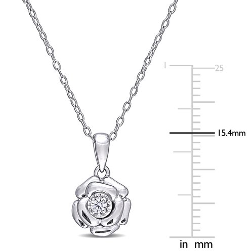 Surprise your loved ones with this divine Diamond Floral Pendant. Crafted in lustrous sterling silver, this splendid pendant features a round-cut, prong-set luminous diamond (G-H, I1-I2) at the center of the flower. Suspended on an 18-inch chain and secured with a spring ring clasp, this ravishing diamond pendant is polished to brilliance.
