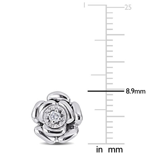 These simple yet elegant Diamond-Accent Floral Stud Earrings are a treat to behold. Crafted to excellence in lustrous sterling silver, these earrings feature two round-cut, prong-set twinkling diamonds (G-H, I1-I2) at the center of the roses. With a high-polish finish and butterfly closures, these diamond-accent earrings will give an elegant look to your jewelry collection.