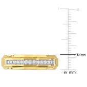 Elevate your style with this Men's 1/5 CT Diamond TW Fashion Ring. Crafted in luxurious 14k yellow gold, this ring features a channel-set design that exudes modern elegance. The 1/5 carat total weight of dazzling diamonds, graded GH for color and I1;I2 for clarity, adds a touch of understated luxury to the ensemble. Whether chosen as a wedding band or a fashionable statement piece, this ring effortlessly captures the essence of delicacy and sophistication. With its size 9 fit, it's a thoughtful gift for him, embodying a sense of refined style and subtle charm. Ideal for stacking or wearing individually, this ring beautifully complements any outfit, making it a versatile addition to any wardrobe.