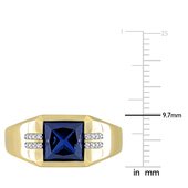 If you are looking for something to gift your partner, then this striking Men's Ring is the best pick. Mounted in sparkling yellow gold, this glamorous ring showcases a square-cut, bezel-set created blue sapphire gemstone (8x8mm) at the center with 16 round-cut, prong-set diamonds (G-H, I1-I2) placed on the sides in two rows. Enhanced with a high polished finish, this exquisite ring will be his favorite accessory for any family function.